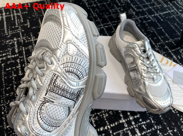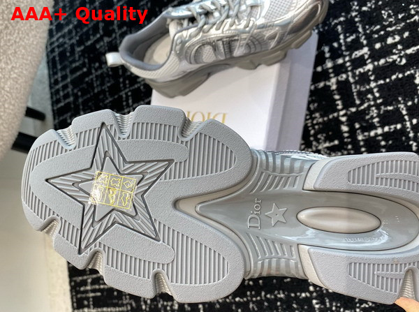 Dior Chrono Sneaker Gray Mesh with Silver Tone Laminated Leather Effect Panels Replica