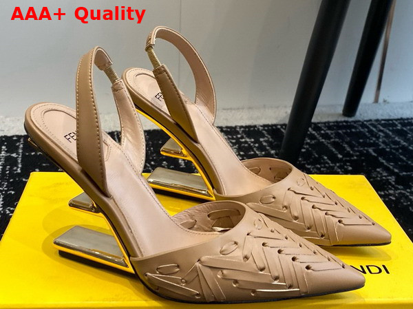 Fendi First Beige Interlaced Leather High Heeled Slingbacks Replica