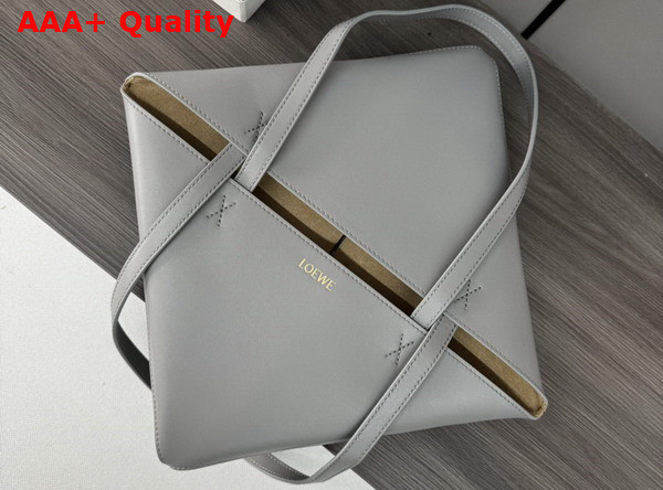 Loewe Medium Puzzle Fold Tote in Shiny Calfskin Pearl Grey and Dark Grey Replica