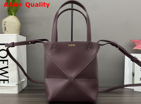 Loewe Mini Puzzle Fold Tote in Dark Burgundy Shiny Calfskin Replica