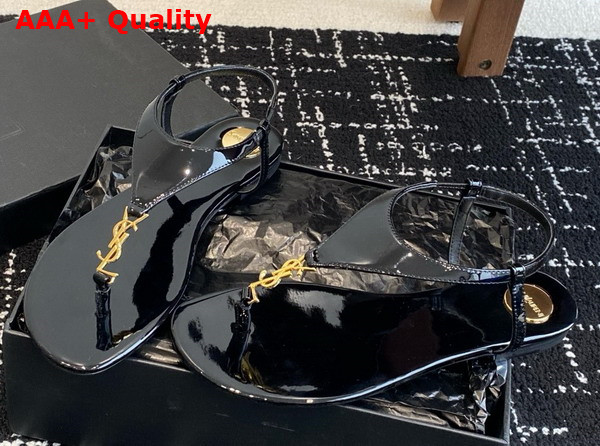 Saint Laurent Cassandra Sandals in Black Patent Leather Replica