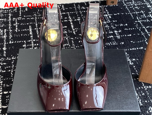 Saint Laurent La Scandale Sandals in Bordeaux Patent Leather Replica